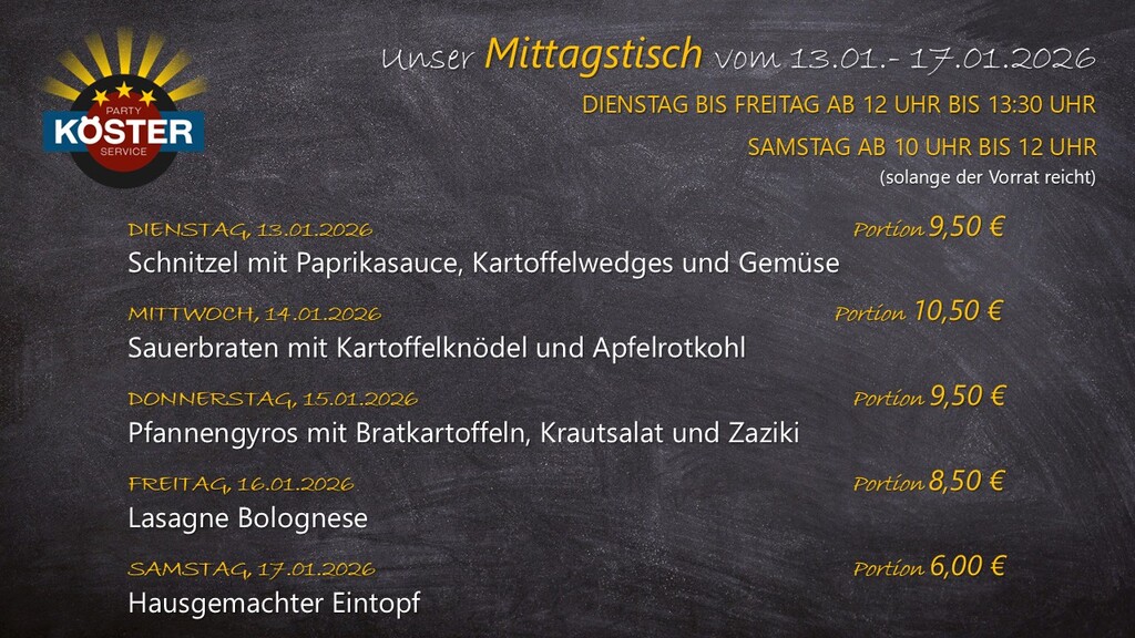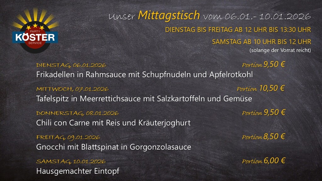 Unser Mittagstisch vom 06.01.- 10.01.2026