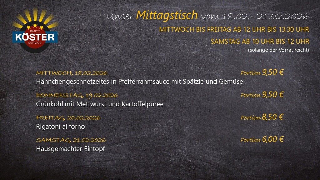 Unser Mittagstisch vom 18.02.- 21.02.2026