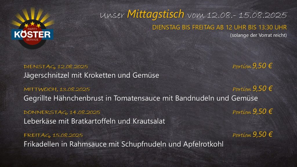Unser Mittagstisch vom 12.08.- 15.08.2025