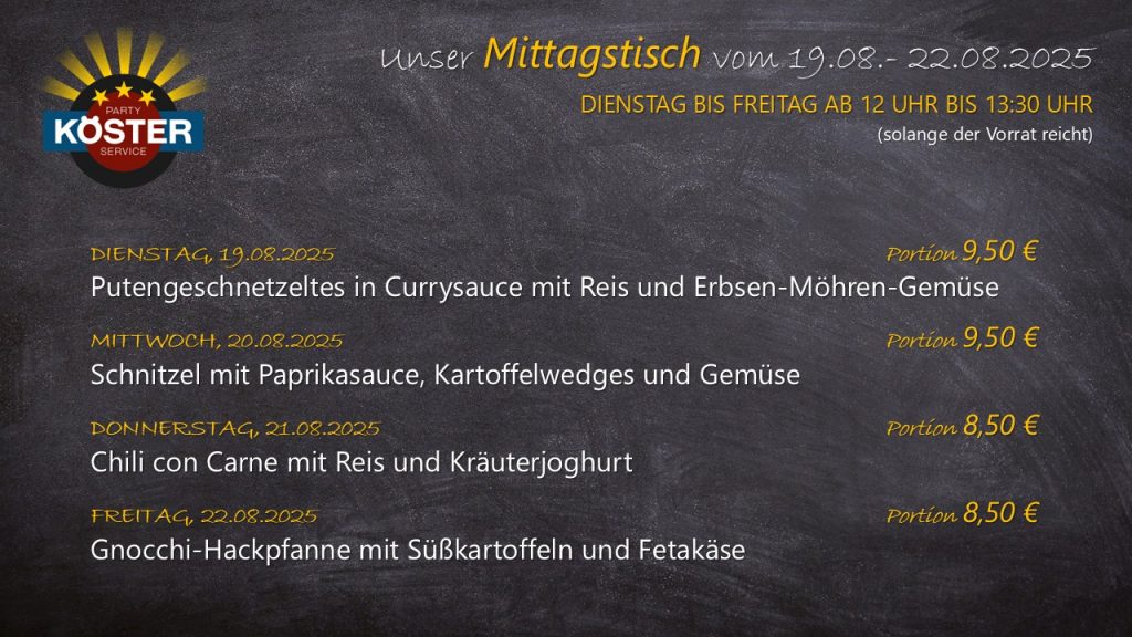Unser Mittagstisch vom 19.08.- 22.08.2025