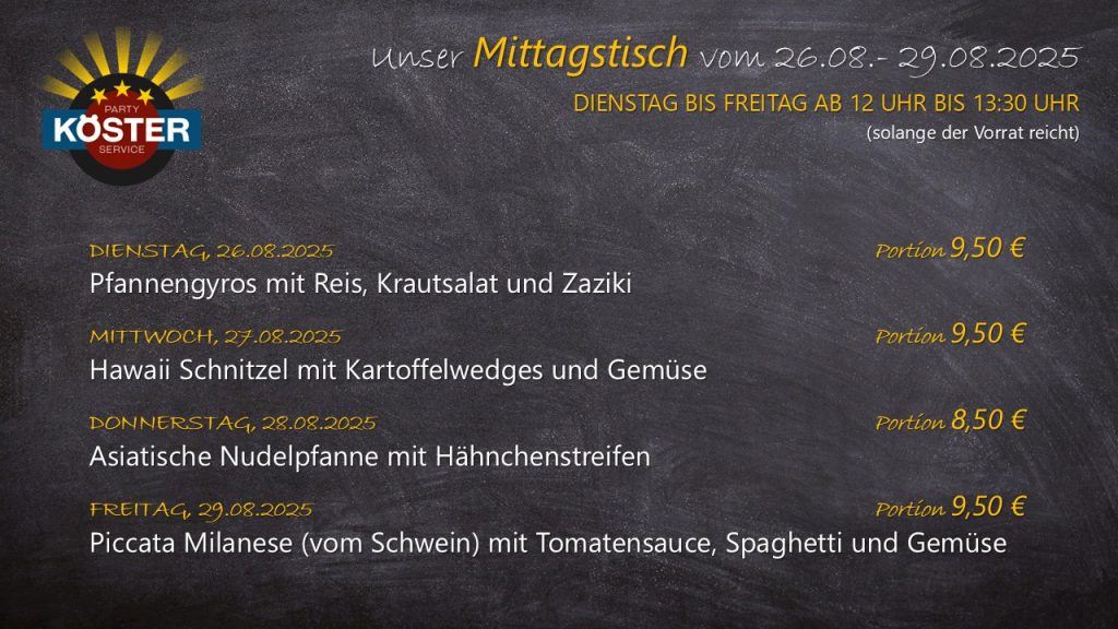 Unser Mittagstisch vom 26.08.- 29.08.2025